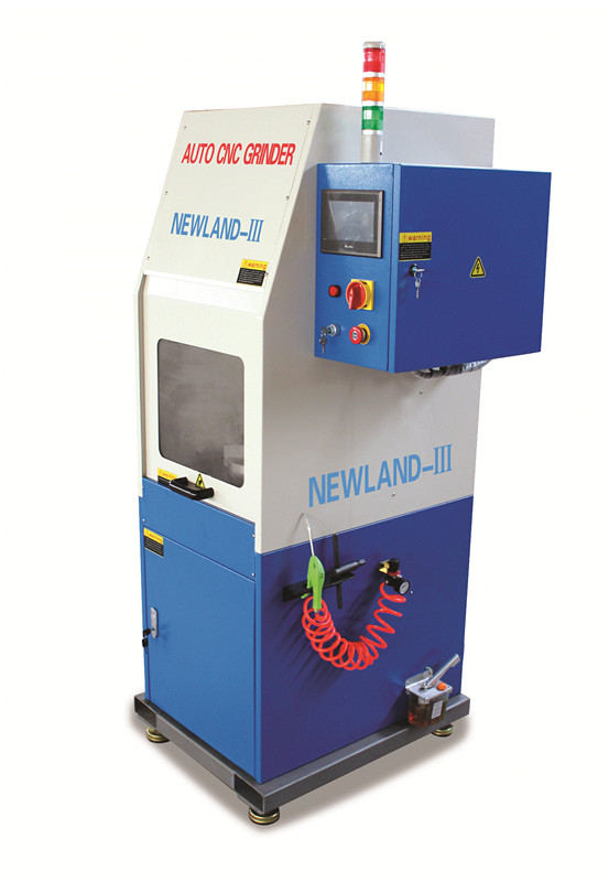 一、研磨機(jī)的用途: 全自動(dòng)數(shù)控研磨機(jī)主要是為了數(shù)控轉(zhuǎn)塔沖床模具的研磨、維護(hù)而開發(fā)的。用于長導(dǎo)向模具、短導(dǎo)向模具、通快設(shè)備模具、村田設(shè)備模具的研磨。合理正確的研磨能使數(shù)控沖床模具使用壽命更長久。 二、主要特點(diǎn): 省時(shí)間 效率高 操作簡單 1、全自動(dòng)研磨、 一次裝夾、自動(dòng)對(duì)刀(無需人工對(duì)刀)、自動(dòng)冷卻、無需修正砂輪、每次進(jìn)刀量控制在0.015mm直至完成模具的研磨,包括裝夾在內(nèi)平均2-3分鐘完成研磨。 2、觸摸屏人機(jī)界面控制系統(tǒng)能自動(dòng)辨認(rèn)完成粗磨 細(xì)磨 精磨三個(gè)研磨過程,使模具不退火、不碎裂、更耐用。 3、研磨長導(dǎo)向模具AB工位時(shí)無需拆卸彈簧即可刃磨,無論是平刃口或是斜刃口沖頭均可研磨,操作簡單、省時(shí)間、高效率。 4、自動(dòng)數(shù)控研磨設(shè)備占用空間小,沖床附近擺放即可,隨時(shí)可以研磨,不影響使用模具。